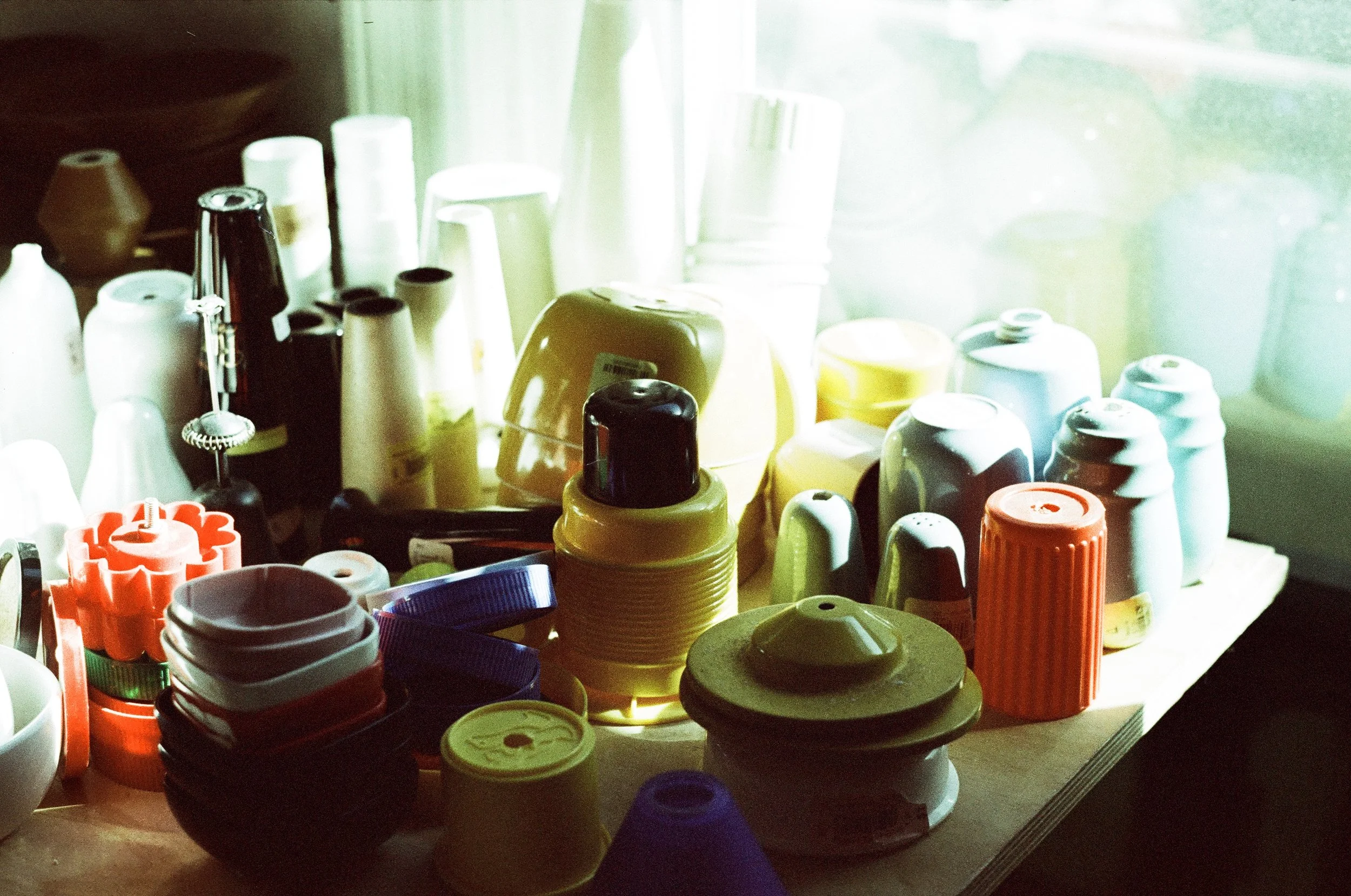 Any found material is considered for construction, this has included toothbrush holders, napkin rings, bowls, shot glasses and even oversized checkers. The idea of waste is challenged by making a new object that is fun, curious, and valuable.
